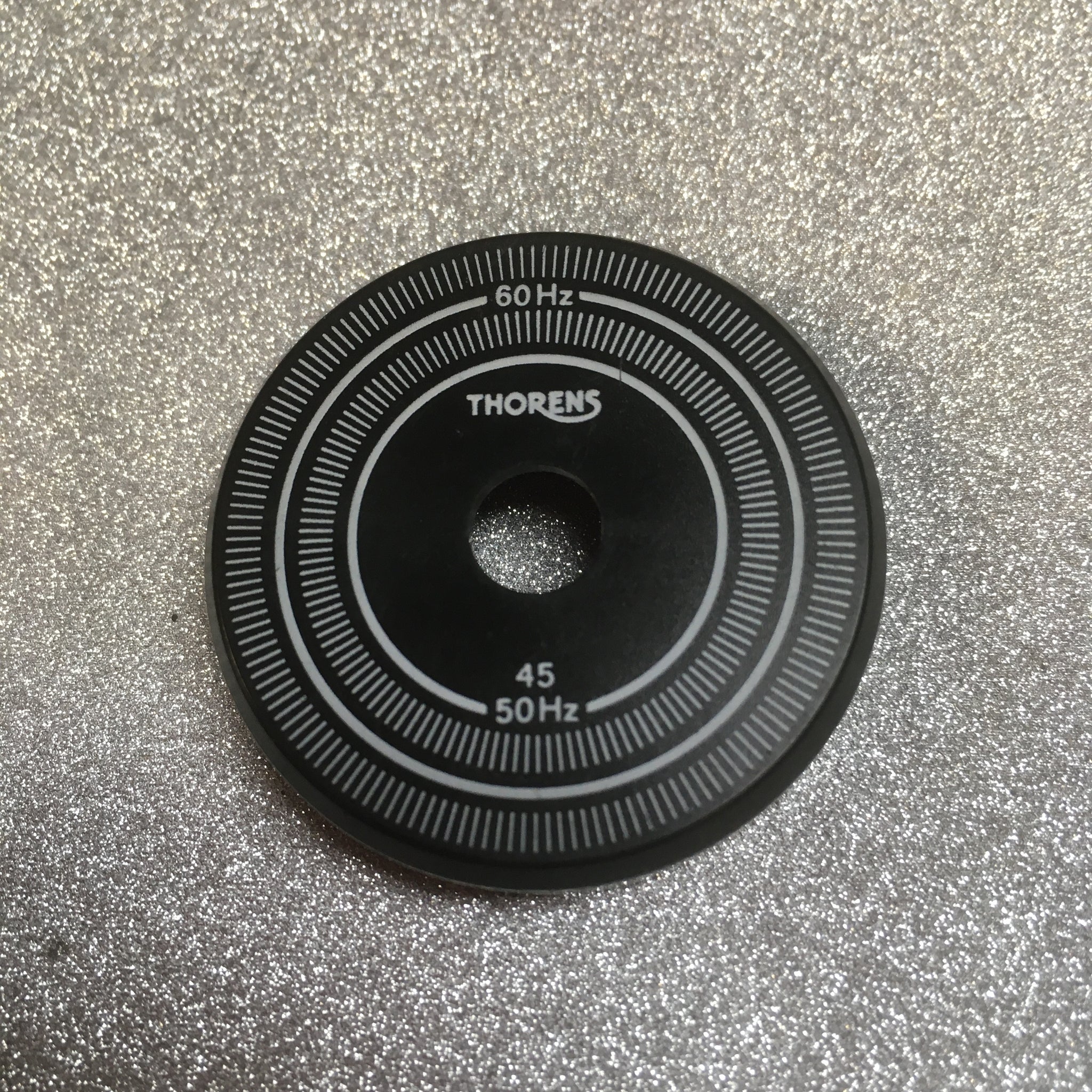 45 adapter with stroboscope that allows you to play your 45 rpm while being able to check on the accuracy of the speed of your turntable