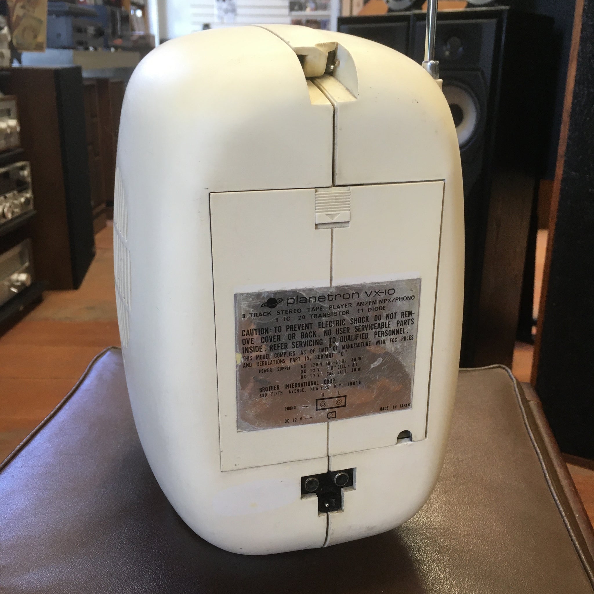 Manufactured in Japan in 1974, the design of this 8 track player was inspired by the space exploration era